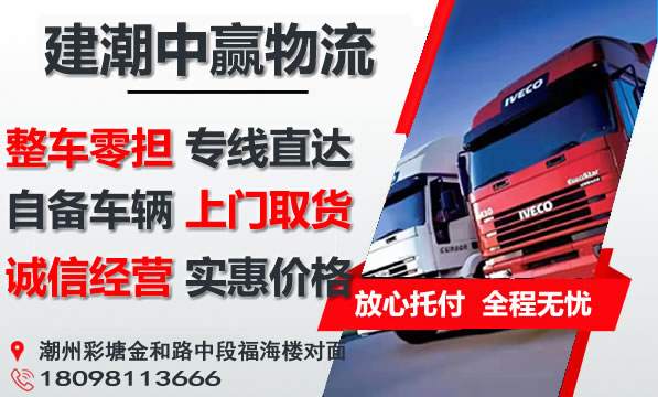 潮州到福州物流专线是建潮中赢物流主营重点物流线路之一,提供4.2-17.5米整车包车运输,零担专线,可上门取货,量大免费提送货;潮州到福州货运专线价格实惠,欢迎来电咨询。